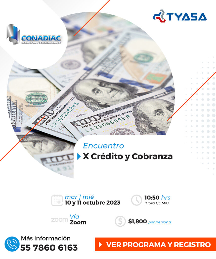 El Comité de Crédito de la Confederación Nacional de Distribuidores de Acero, les hace una atenta invitación a participar en el X Encuentro Nacional de Ejecutivos de Crédito y Cobranza Virtual 2023, el cual se celebrará los días 10 y 11 de octubre vía web